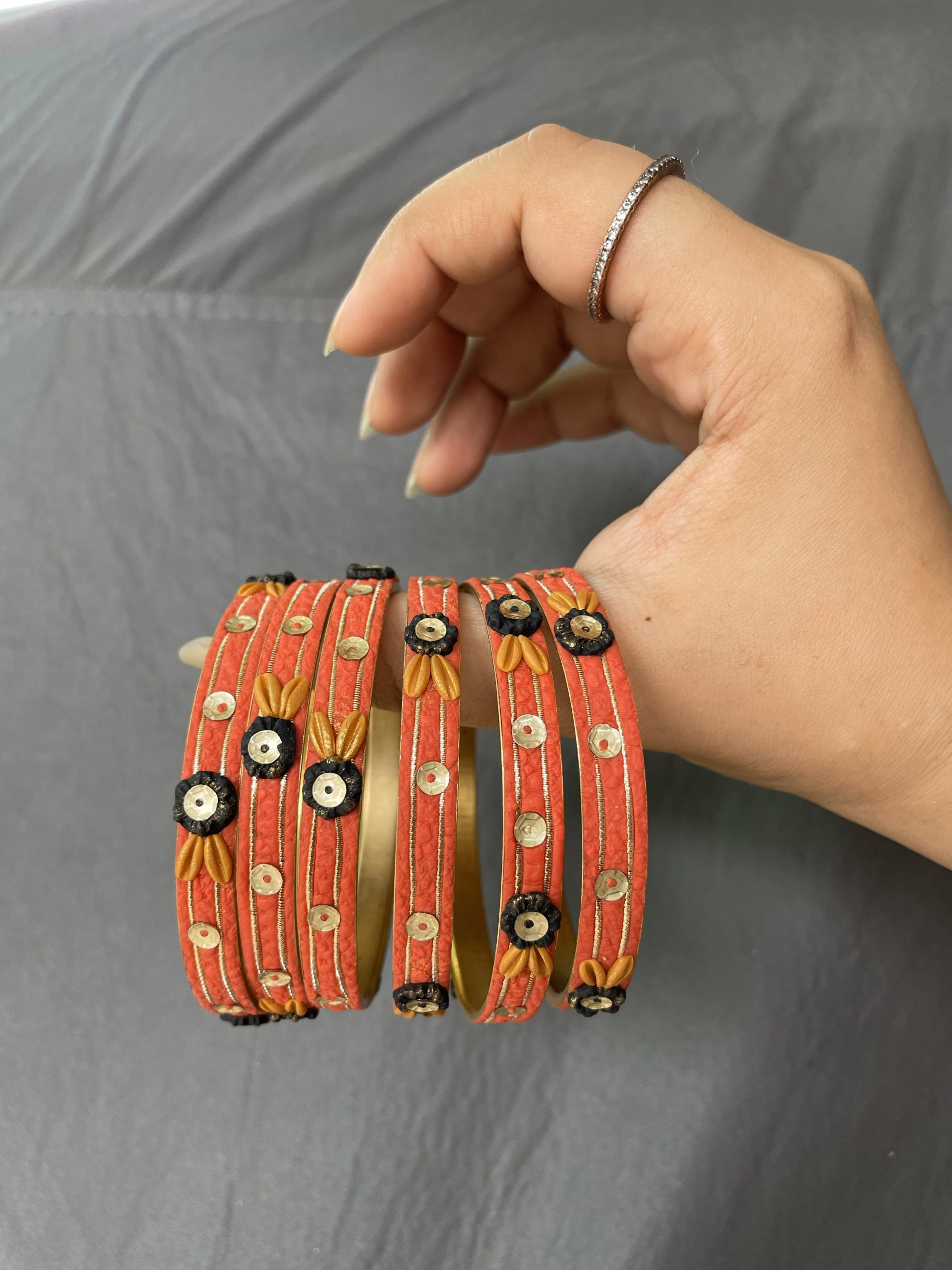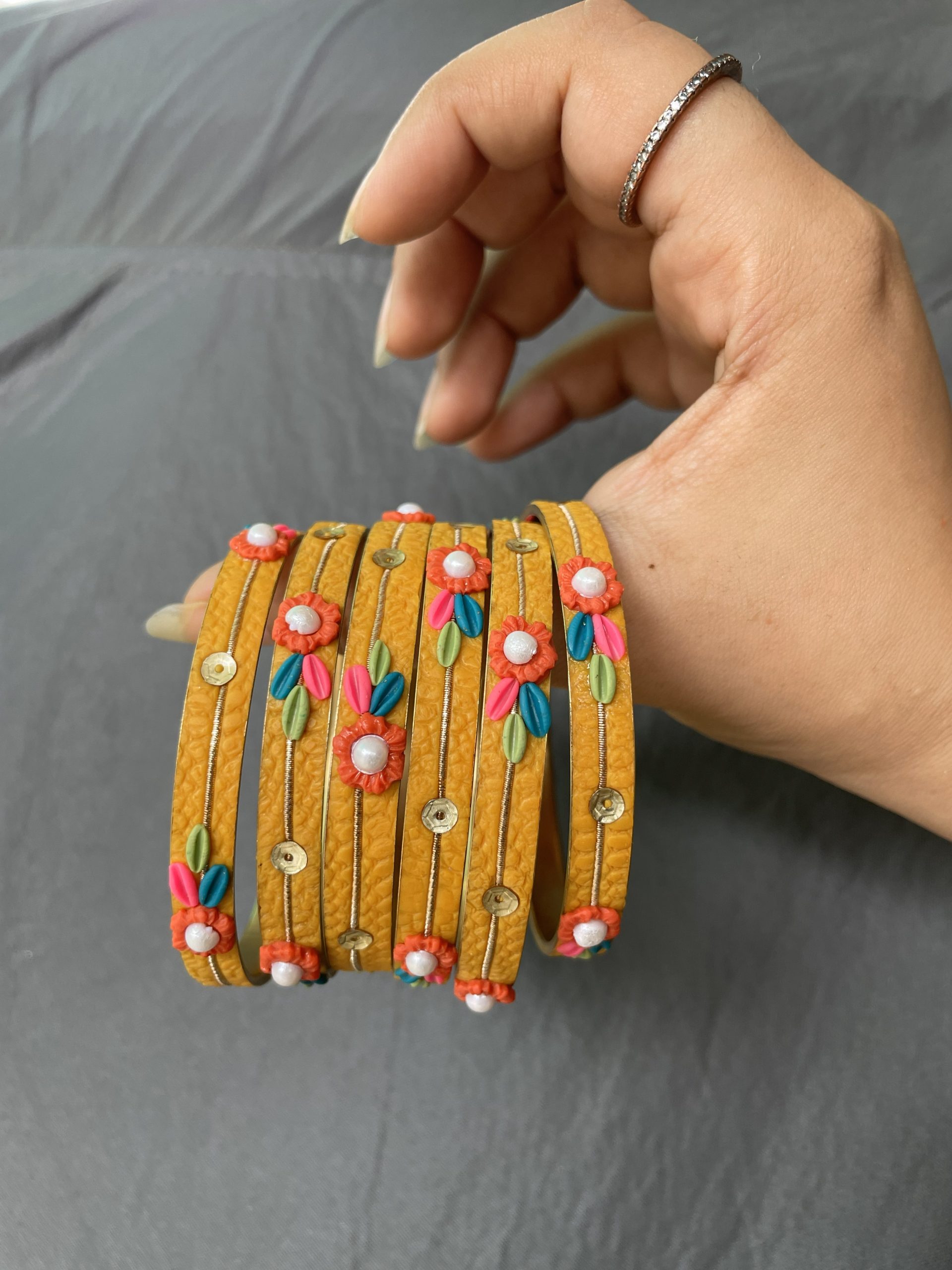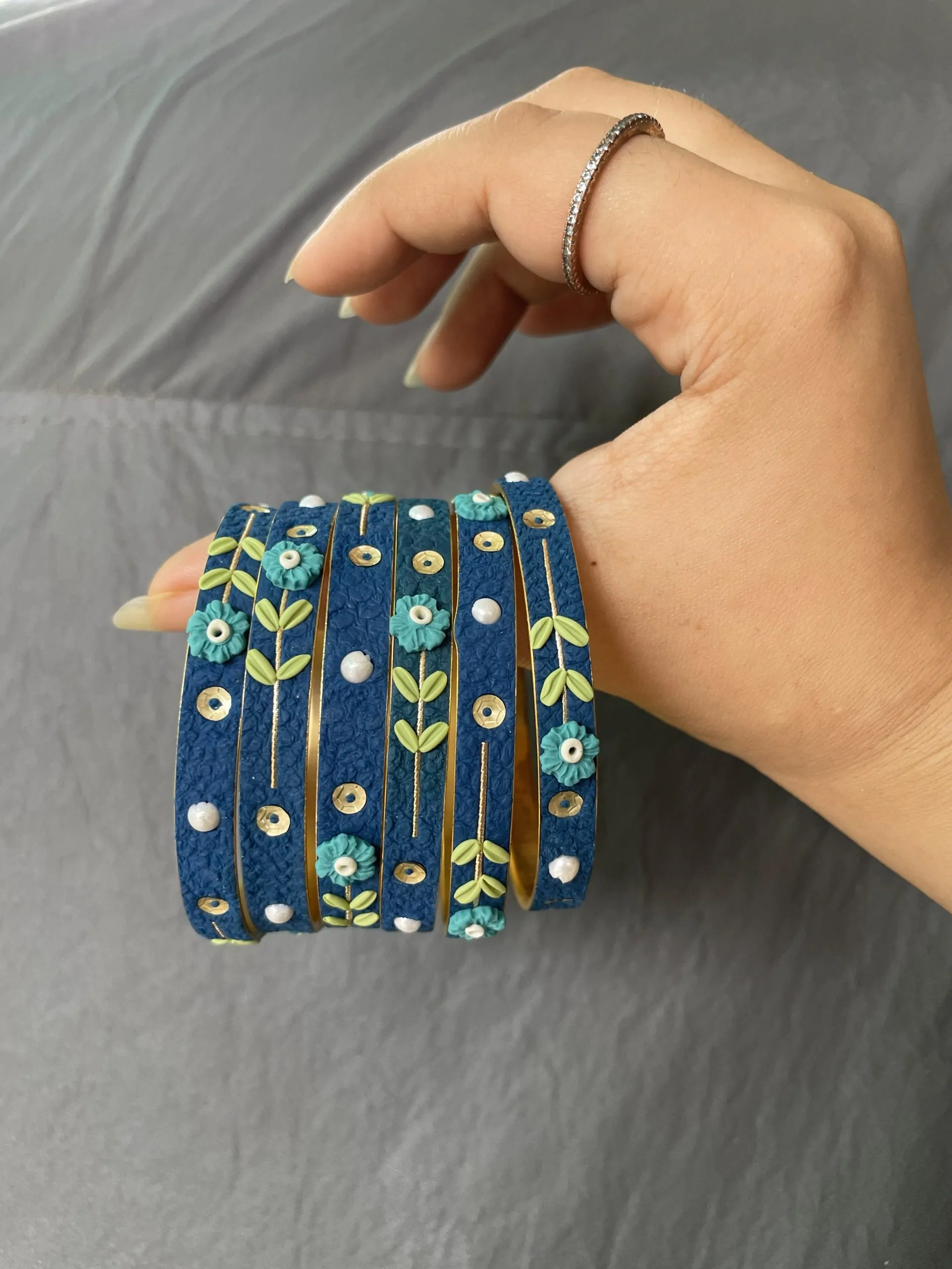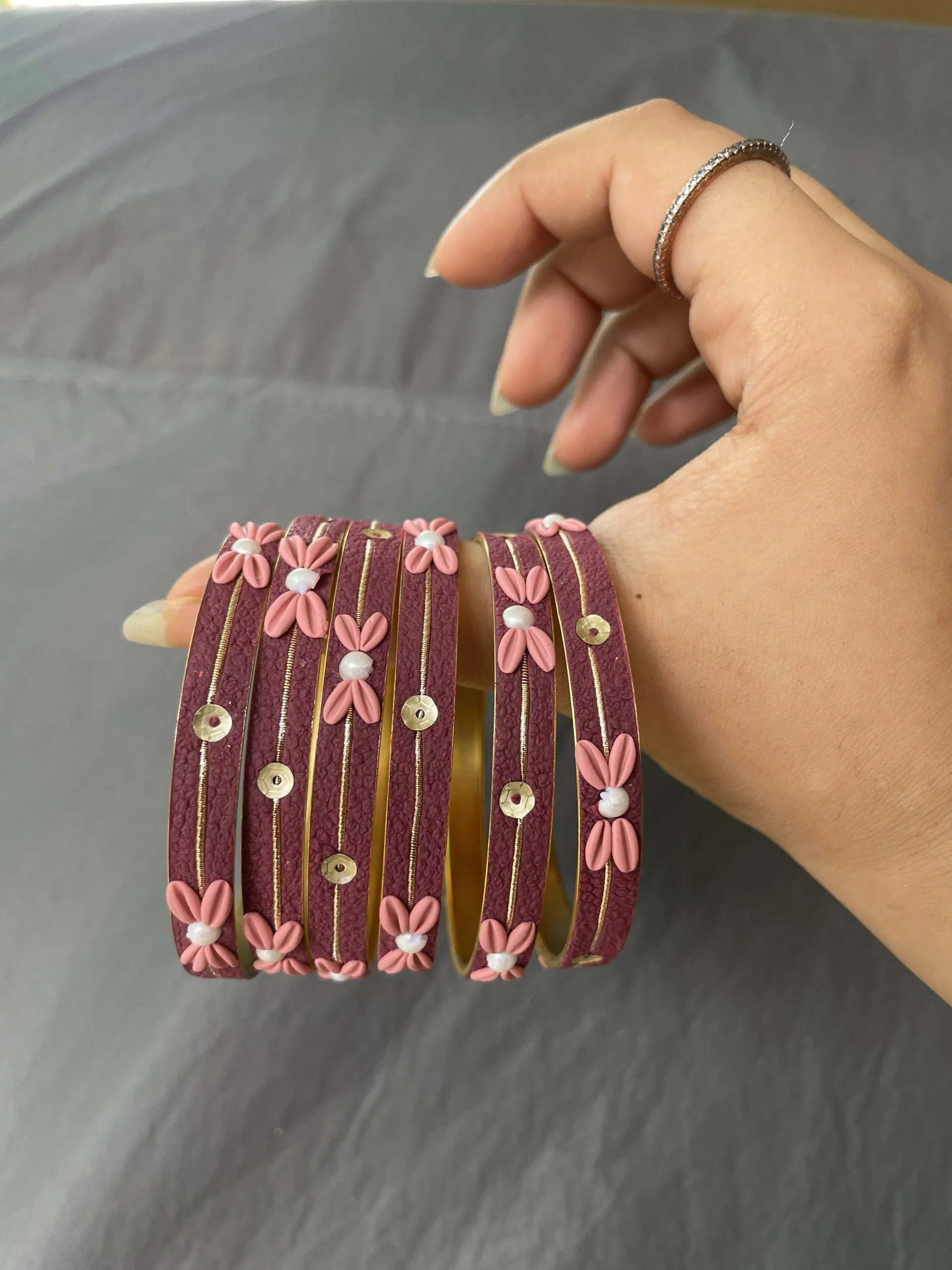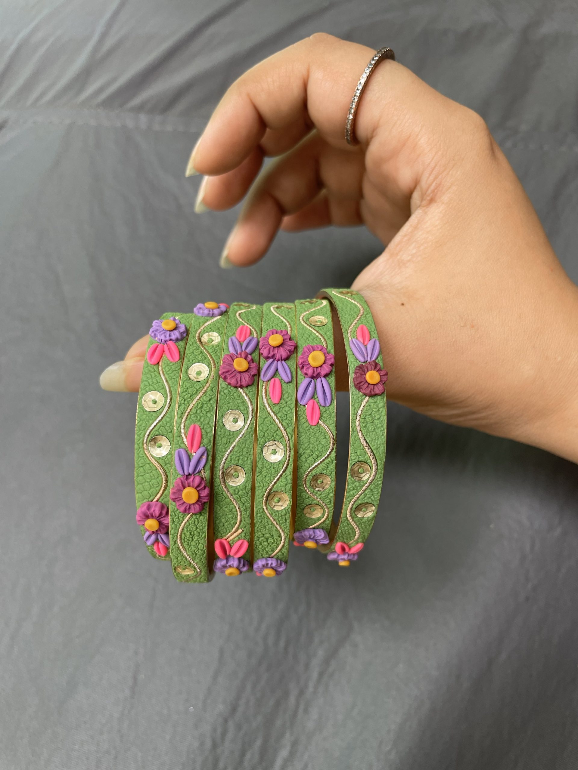 Handmade Artistry: Each bangle features unique floral arrangements and hand-embellished details.