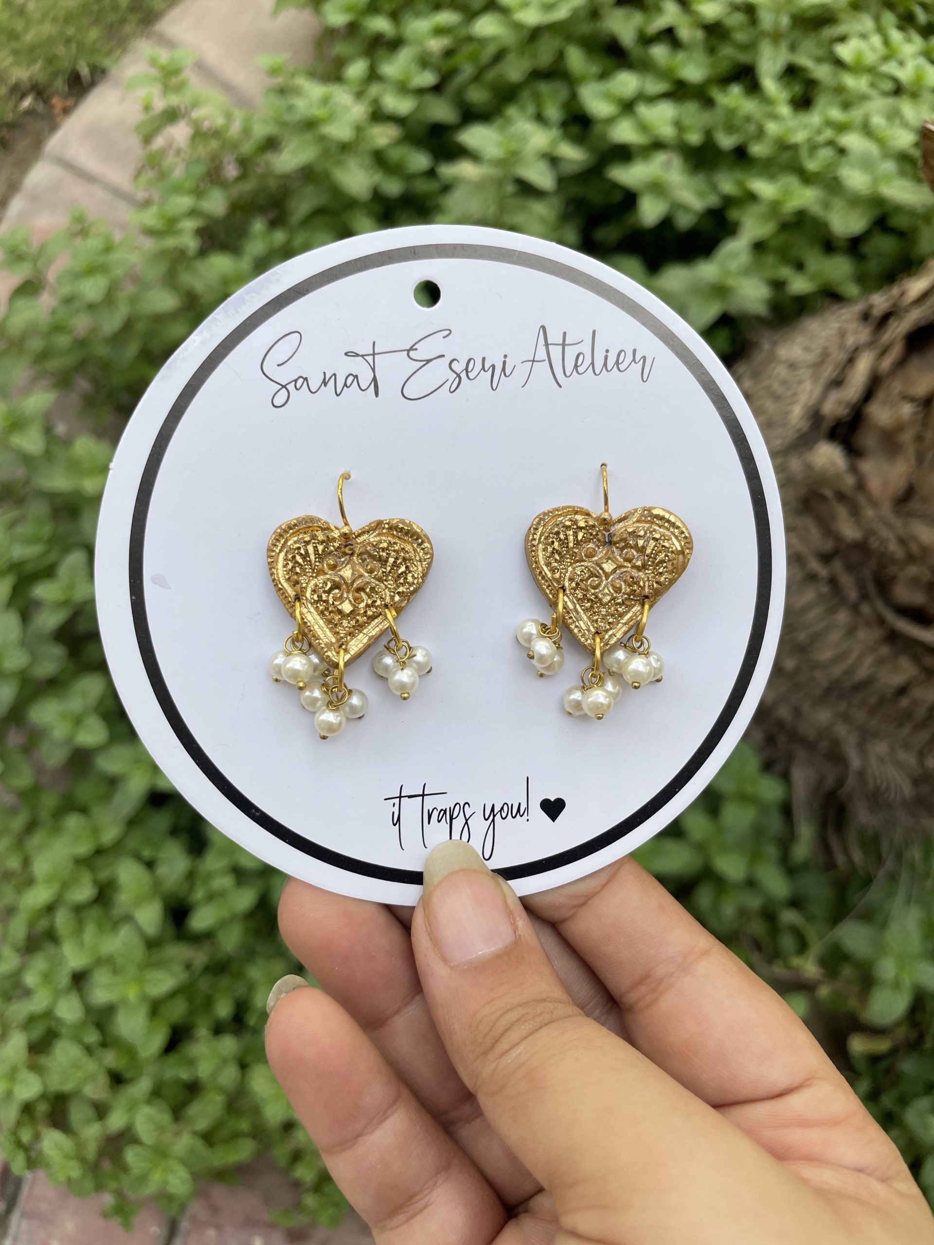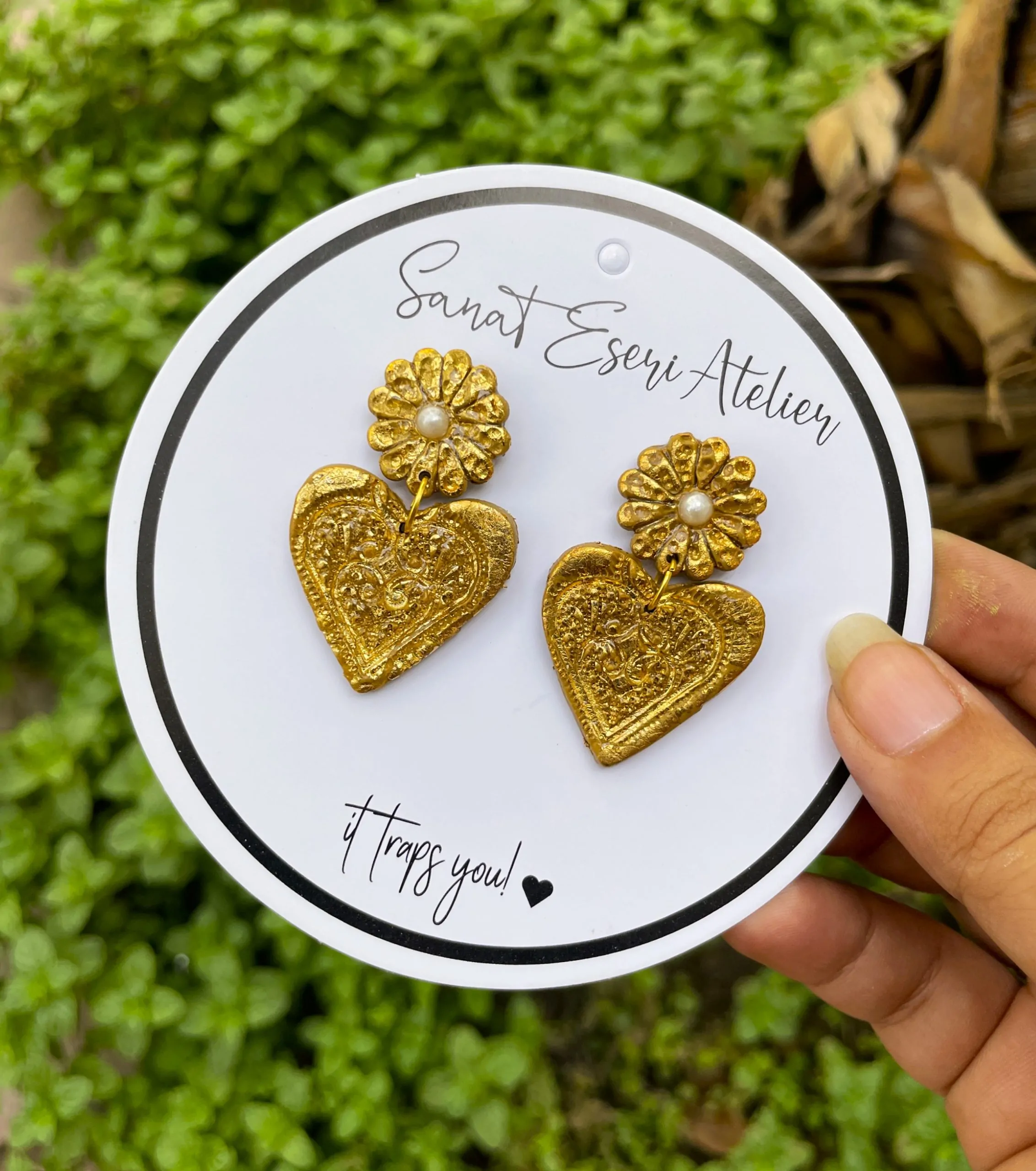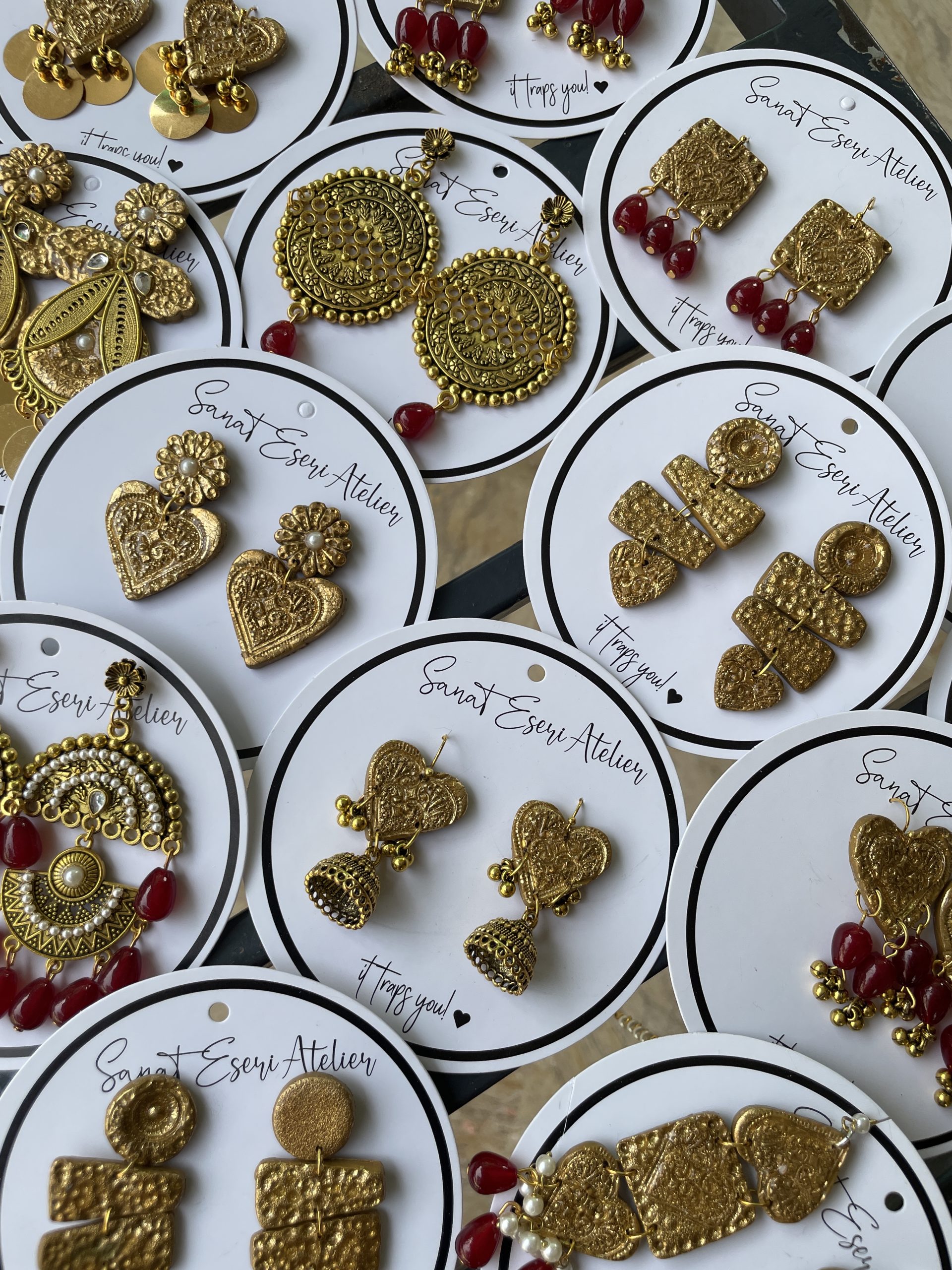 Our newest earring arrivals celebrate the intricate beauty of traditional metalwork, reimagined through a contemporary lens. Hand-finished with a rich, antique gold texture, these statement pieces are more than just jewelry